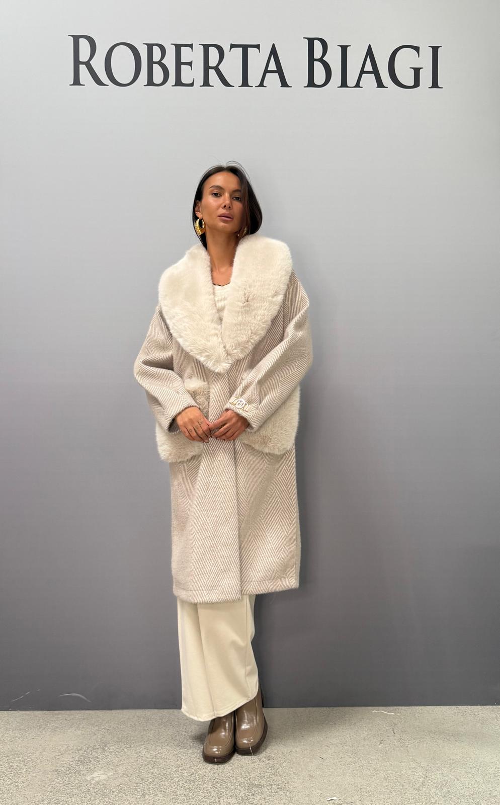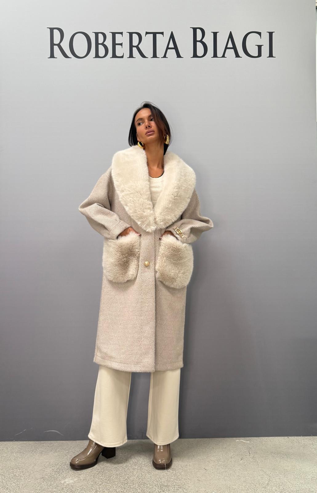 CAPPOTTO DOUBLE FACE SPIGATO CON COLLO E TASCONI IN ECOPELLICCIA