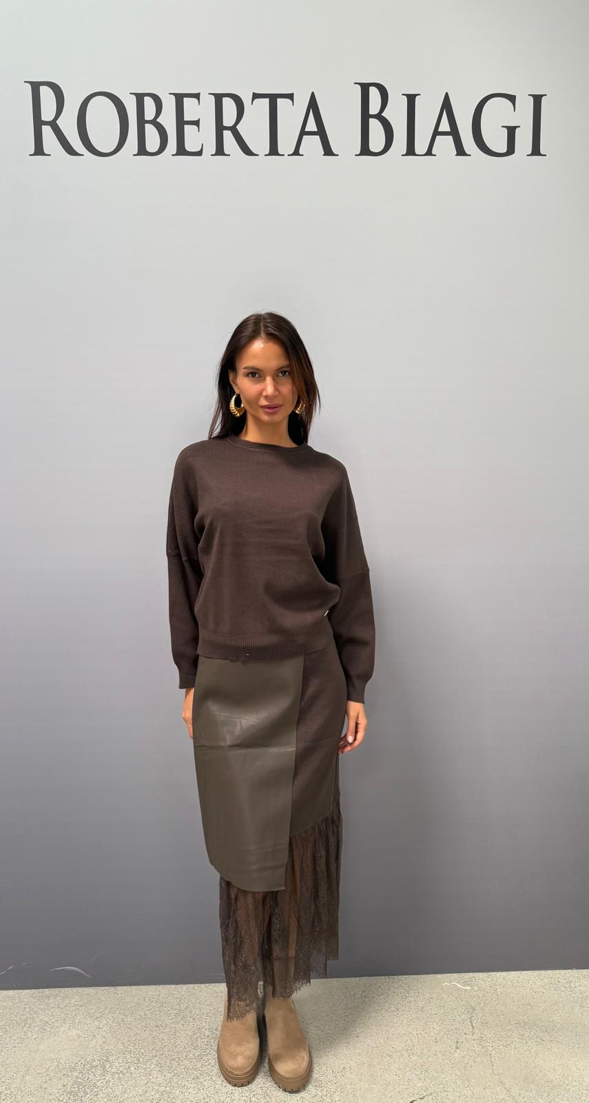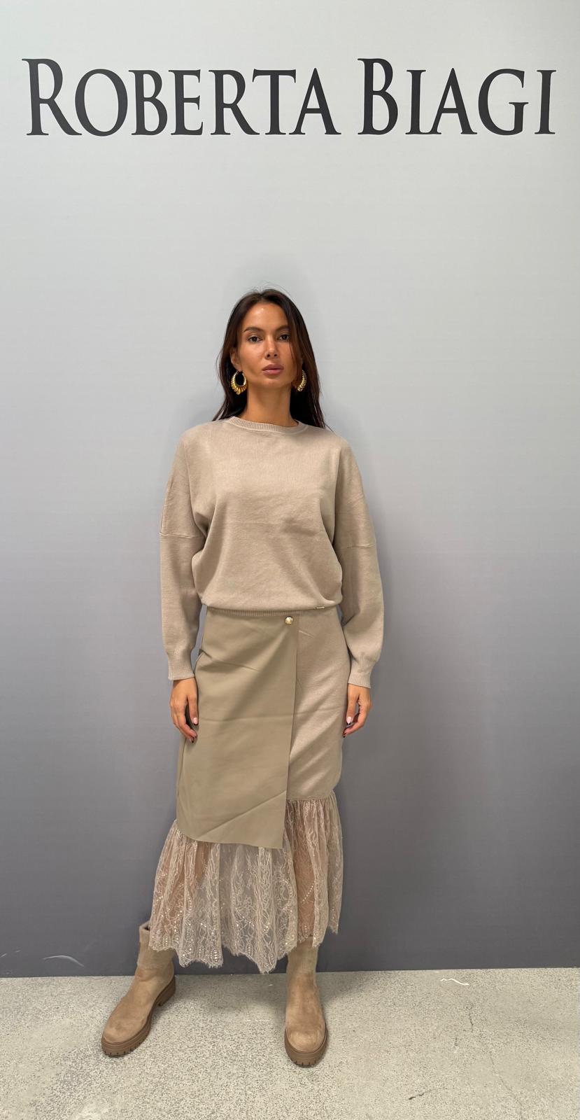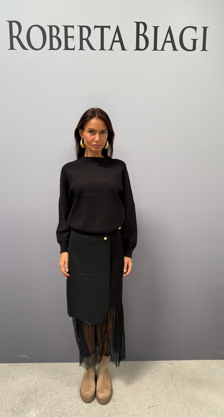 COMPLETO MAGLIA PIU GONNA CON BALZA IN TULLE E DETTAGLIO ECOPELLE