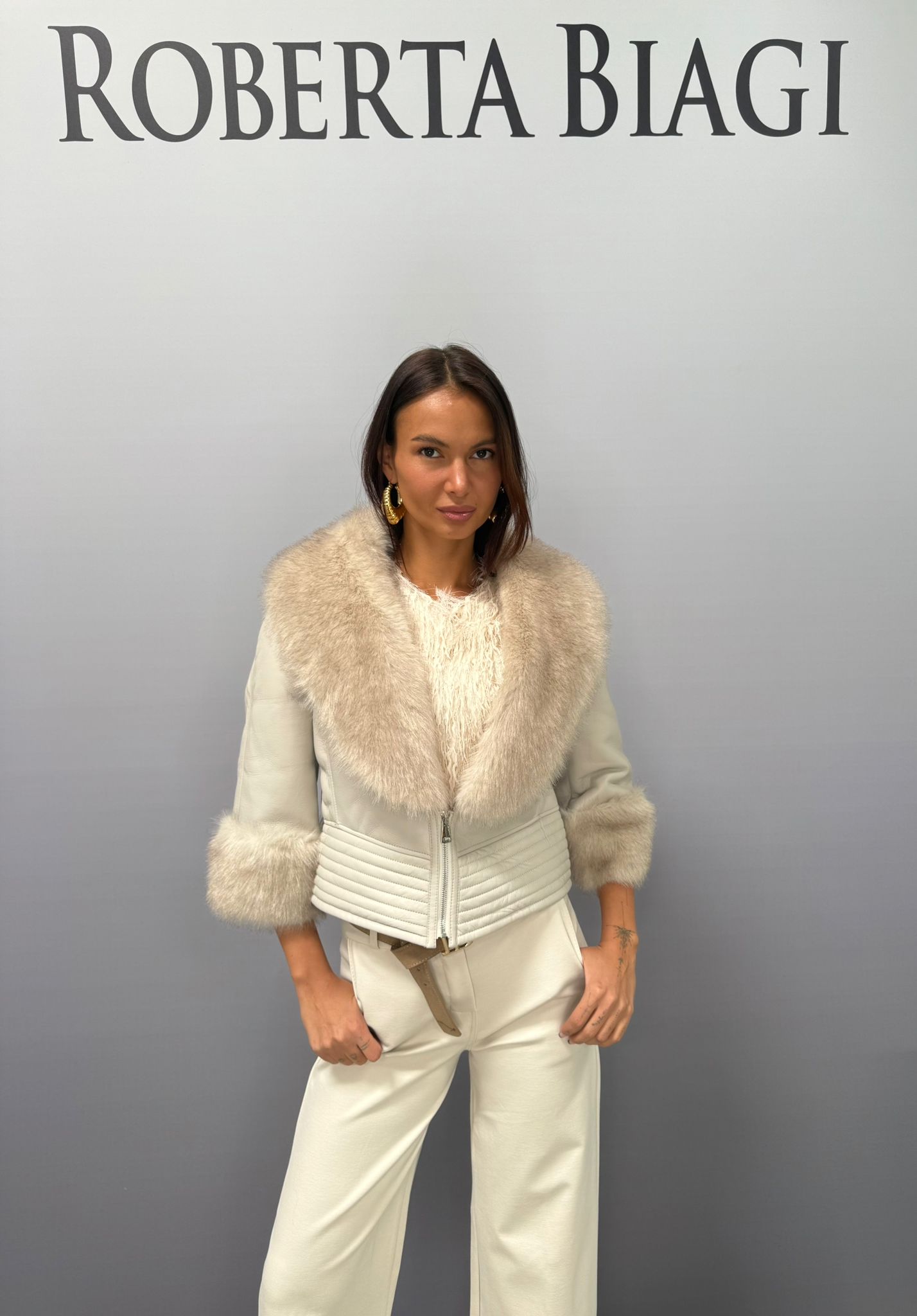 GIUBBINO ECOPELLE CON COLLO E POLSI IN ECOPELLICCIA CON ZIP BASTA