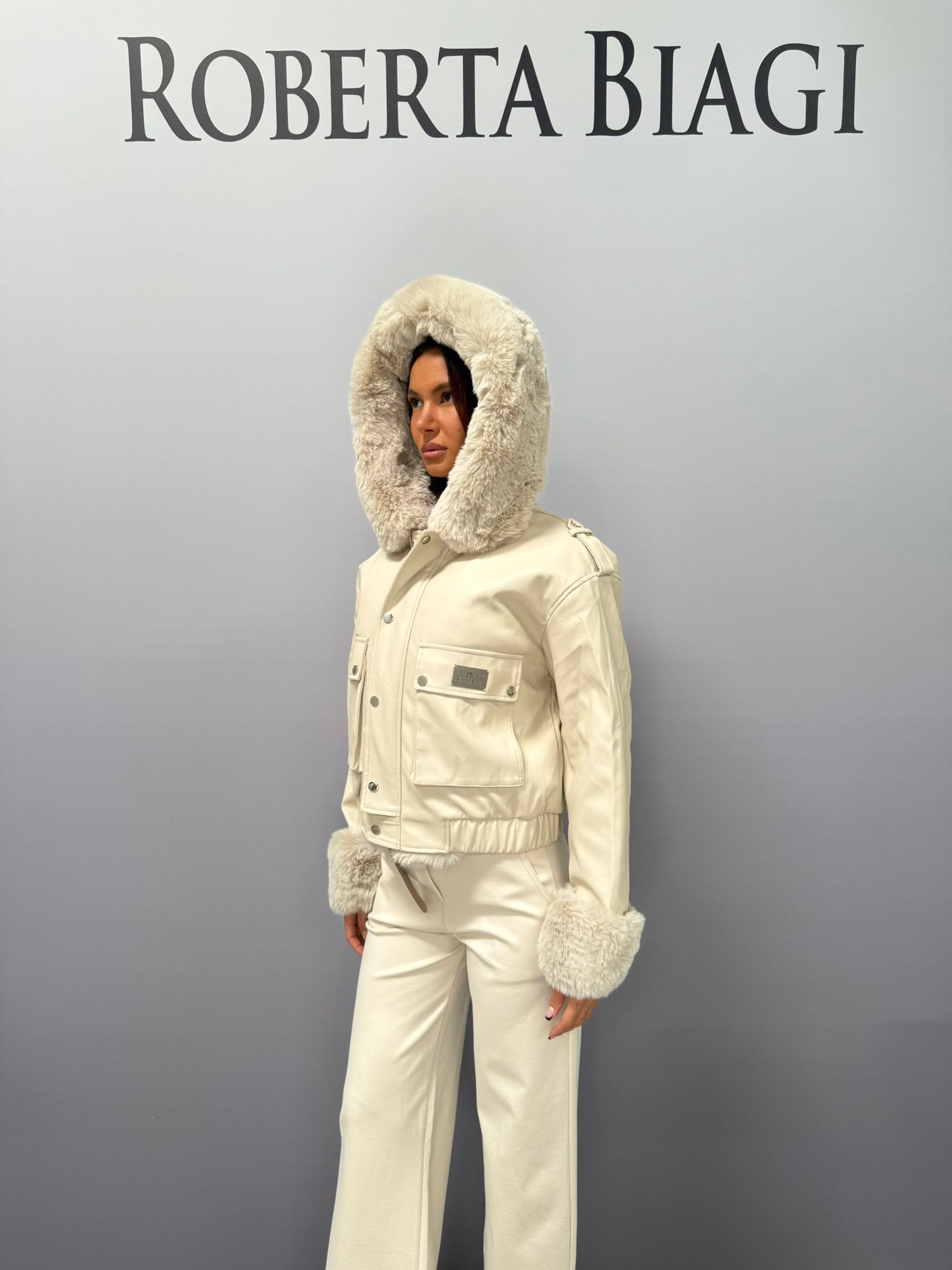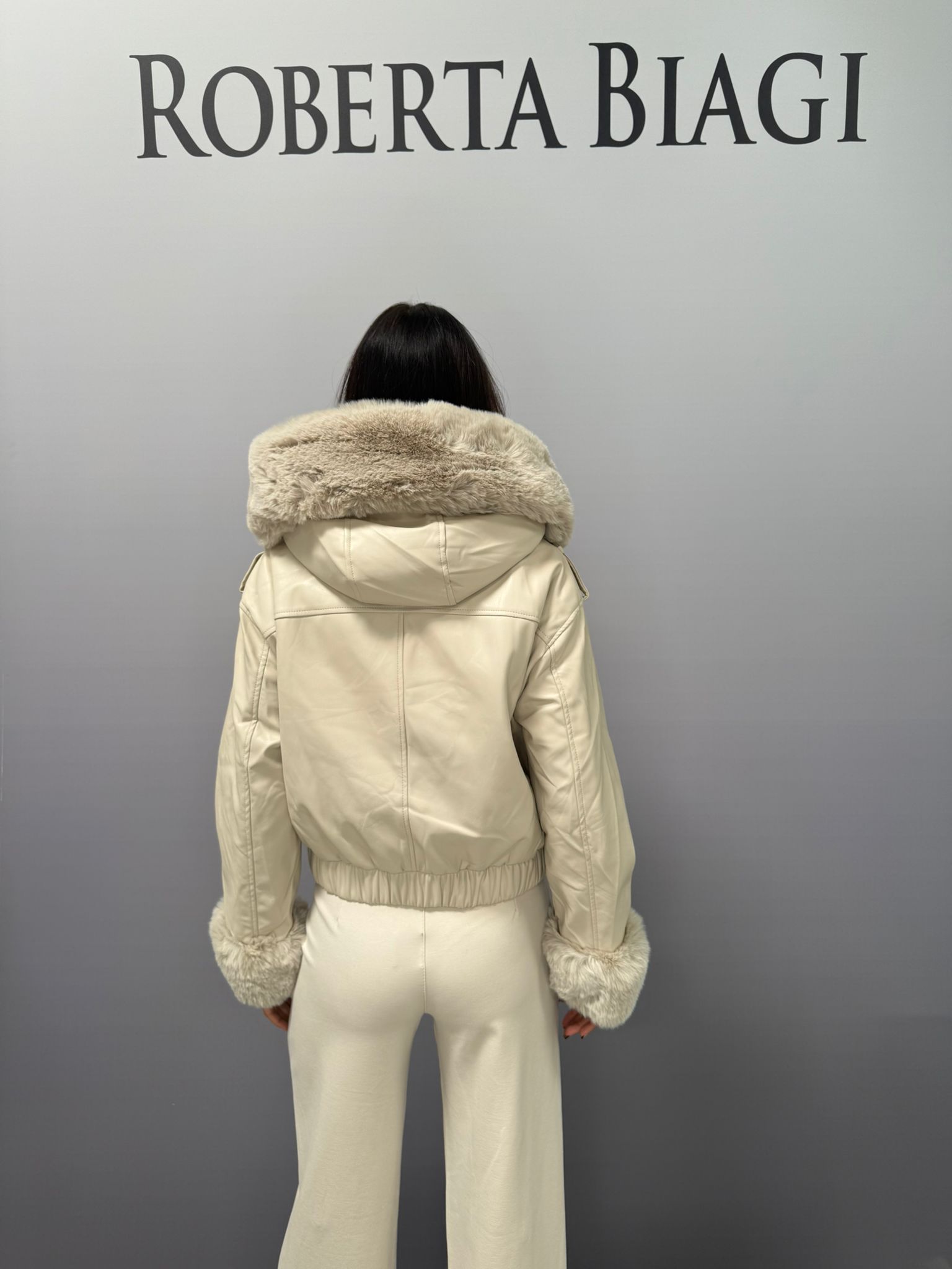 BOMBER ECOPELLE CON RIPORTI ECOPELLICCIA SU CAPPUCCIO E POLSI PIU PLACCA RB