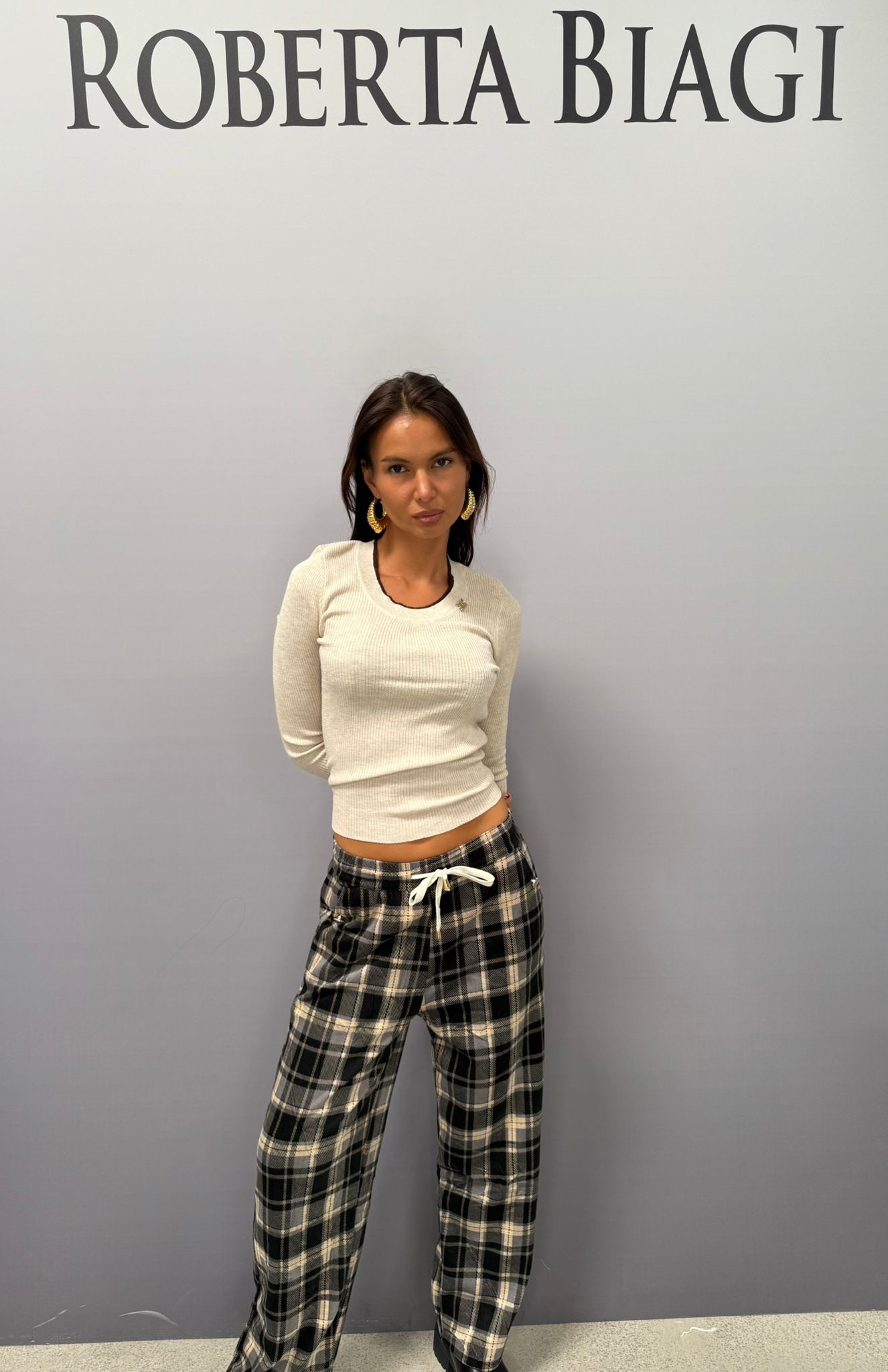 PANTALONE TARTAN IN VELLUTO CON TASCHE A FILO PIU BOTTONI ORO CON ELASTICO
