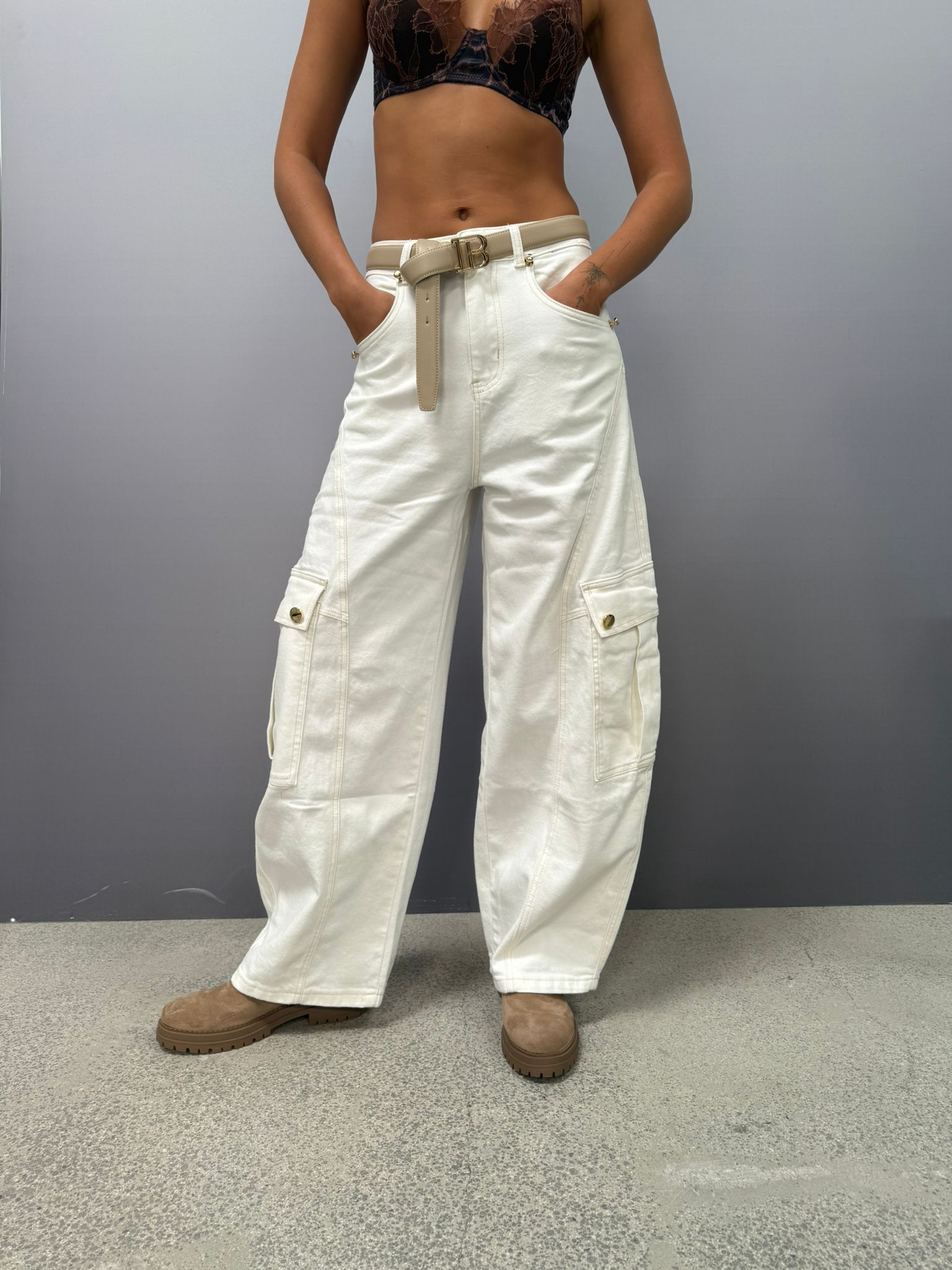 DENIM BALLOON CON TASCHE PIU RIVETTI ORO